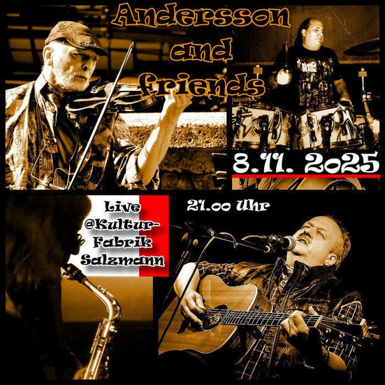Die neue Formation von „Andersson and friends“ setzt auf melodisch-rockige Klänge, mit einer hohen Dynamik. Neben Blues und Balladen geht es im Wesentlichen immer um eingängige und rockige, gut hörbare Melodien. Geboten wird ein Programm aus eigenen Songs und handverlesenen Coverstücken, aus der guten alten Zeit der Rockmusik. Es werden Lieder gespielt, die unter die Haut gehen. Die Saxophonistin Birgit Goldbourne und der Geiger Uli Hernmarck liefern im Solobereich Passagen, wie man sie in der lokalen Szene meist suchen muss. Der Schlagzeuger Andreas Graf sorgt für den notwendigen Drive und die Formation, um Lobo Andersson herum, verspricht uns melodischen Alternativen Rock mit alltagsbezogenen Texten in Englisch und in Deutsch. Das musikalische Spektrum geht von „gefühlvoll-wild“ bis „träumerisch-revolutionär“.