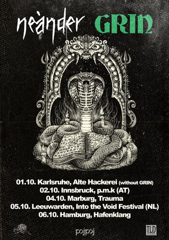 Die Berliner Bands neànder und GRIN tun sich zusammen und gehen im Oktober für ausgewählte Dates gemeinsam auf Tour. Neben schweren Riffs und sphärischen Klanglandschaften kann sich so wohl auf neues Material als auch zeitlose Klassiker gefreut werden.