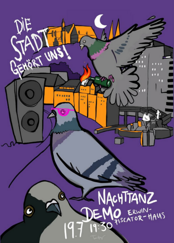Nachdem wir uns im letzten Jahr die Straßen Marburgs genommen haben, rufen wir auch dieses Jahr erneut zur Nachttanzdemo auf!Kultur ist für alle da!Der Brandbrief der Kulturbetriebe aus dem letzten Jahr ist ungehört verhallt. Das Motto staatlicher Stellen lautet im Gegenteil: Sparen. Diese Einsparungen im sozialen und kulturellen Bereich bedrohen den Zusammenhalt in unserer Stadt, denn Kultur bietet eine kreative Möglichkeit der Auseinandersetzung mit gesellschaftlich relevanten Themen. Aber auch Kneipen als wichtiger Ort sozialer Interaktionen, sind weiterhin von Verdrängung bedroht. Unabhängig von Konsum sind sie ein Ort der Begegnung und des Austauschs für ALLE Menschen. In Zeiten eines ungebremsten Rechtsrucks Räume für Soziales und Freizeit aufs Spiel zu setzen, bedroht das demokratische und solidarische Zusammenleben insgesamt.Wir fordern den Erhalt und Ausbau von (Sub)Kultur! Freiräume statt Kürzungen!Verdrängung nimmt ihren LaufDie Situation auf dem Wohnungsmarkt hat sich auf keinste Art und Weise verändert: Die Mieten steigen weiter respektlos, obwohl die Häuser sich in einem desolaten Zustand befinden und Leerstand weit verbreitet ist.Es herrscht Wohnraummangel, sowohl soziales als auch preisgünstiges Wohnen ist Mangelware in Marburg.Wir fordern Mietschutz und den Stopp der Verdrängung in unserer Stadt!Wem gehört die Stadt?Nicht den Jugendlichen, nicht den Wohnungslosen und nicht den sozial Schwachen. Die Stadtpolitik Marburgs geht den Weg der Verdrängung, um den Tourismus nicht zu gefährden. Armut soll nicht sichtbar sein - dafür müssen die Wohnungslosen und die Drogenkonsument*innen aus dem Stadtbild entfernt werden. Polizeipräsenz, Kameraüberwachung und weitere repressive Maßnahmen sollen gestärkt werden. Wir fordern stattdessen sozialen Wohnraum, den Ausbau der sozialen Arbeit und die Schaffung selbstverwalteter Räume, insbesondere für Jugendliche.Die Stadt gehört uns allen!Wir tanzen uns den Frust von der Seele!Nachttanzdemo am Samstag, den 19.07 um 19:30 Uhr am Erwin-Piscator-Haus.Unsere Solidarität gegen ihre Sparpolitik!