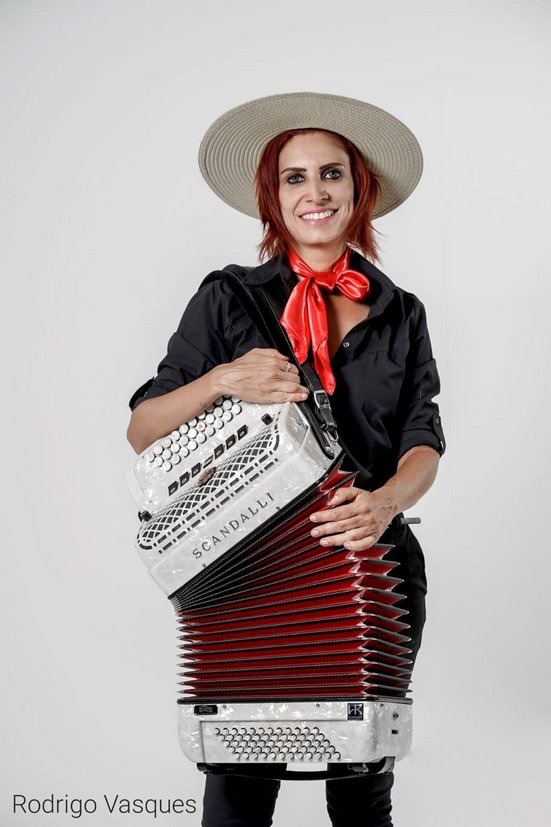 Adriana de Los Santos kommt aus dem Süden Brasiliens. Über ihr erstes Akkordeon sagt sie: „Ich merkte schnell, dass es unmöglich ist, das Instrument nicht anzufassen. Wenn man es spielt, ist es wie ein Lachen, dem eine Herzen und Seelen erobernde Musik entströmt.“Seit über 20 Jahren behauptet sich Adriana in der von Männern dominierten Gaucho-Welt und repräsentierte als erste Frau die Gaucho-Kultur in Europa – auf der Akkordeonale 2014!Mit ihrer Frauenband „Gurias Gauchas“ spielt sie auf Rodeos und Festivals und tritt in diversen Shows in Brasilien, Argentinien und Europa auf.Adriana vermittelt mit ihrer Musik das immaterielle Weltkulturerbe des Chamamé.
