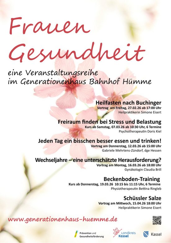 it einer neuen Veranstaltungsreihe zum Thema Frauengesundheit bietet das Generationenhaus Bahnhof Hümme von Ende Februar bis April ein vielfältiges Programm, das Frauen in unterschiedlichen Lebensphasen unterstützt und informiert. Die kostenfreien Vorträge und Kurse greifen zentrale Themen der körperlichen und seelischen Gesundheit auf und vermitteln praxisnahes Wissen für mehr Wohlbefinden im Alltag.